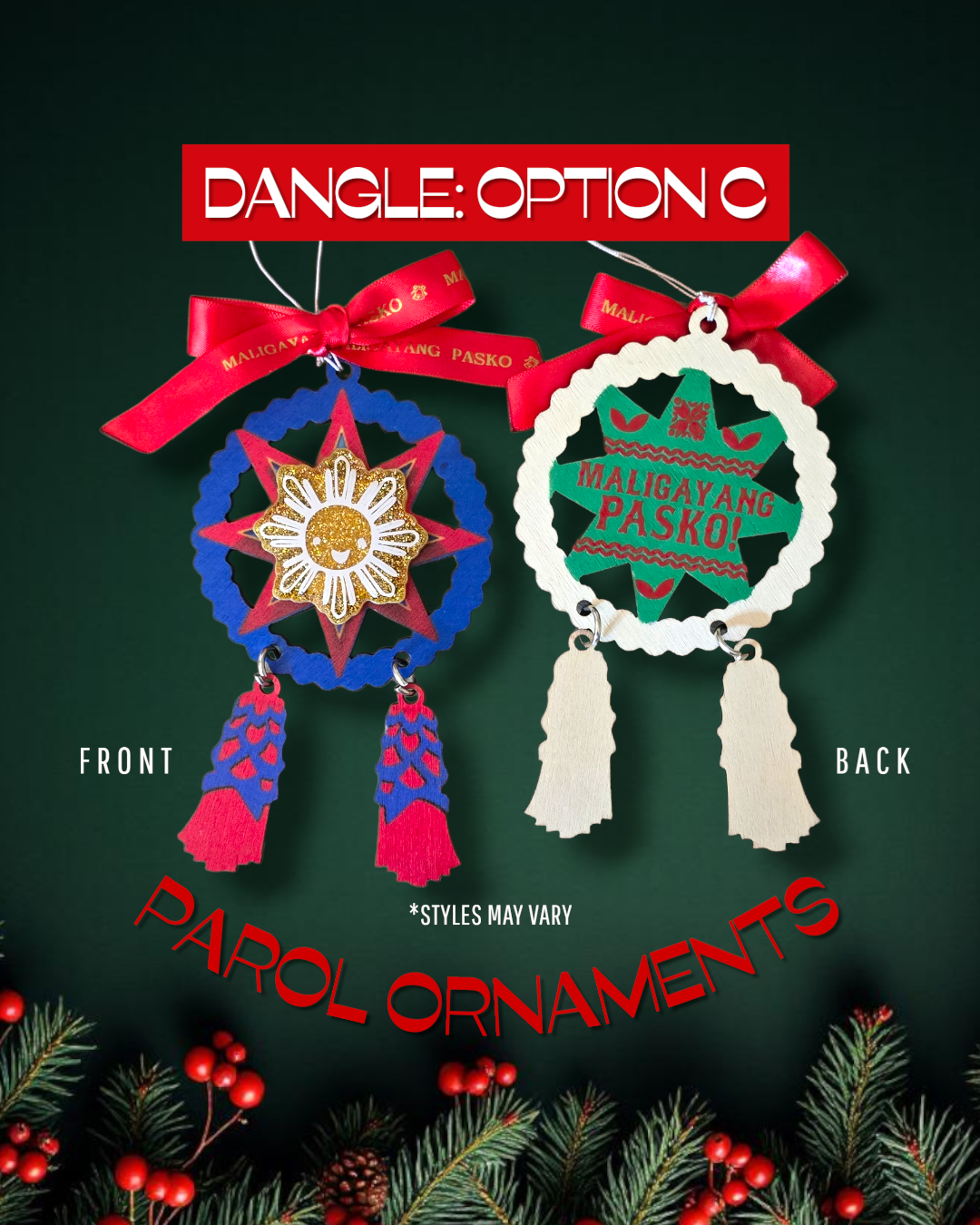 Brighten your holiday tree with these charming parol star ornaments! Handcrafted from basswood and acrylic, some pieces feature a cheerful littlehoneyvee Filipino sunny character and "Maligayang Pakso" (Happy Christmas) inscribed on the back. With hand-painted details and natural variations that make every ornament one-of-a-kind, these festive stars celebrate Filipino holiday traditions in style. Perfect for adding warmth and cultural flair to your Christmas décor.